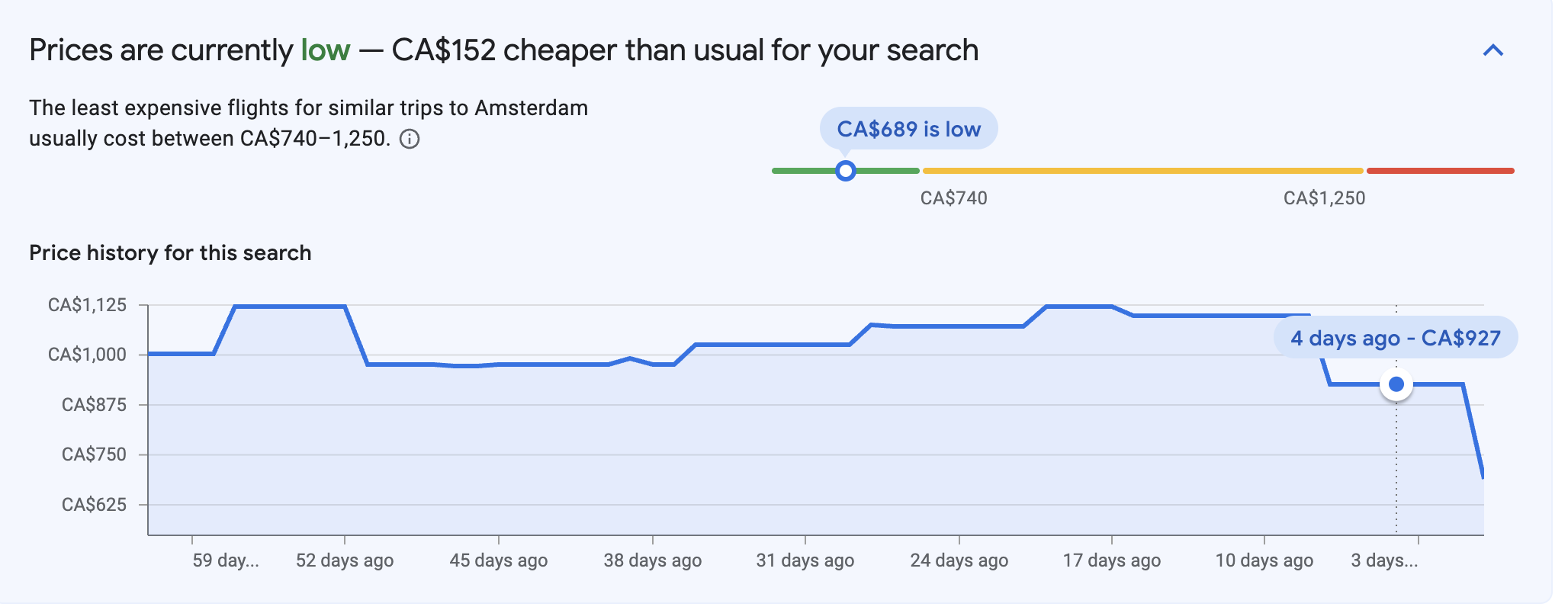 Les prix pour Amsterdam viennent de bien baisser aujourd'hui 👌