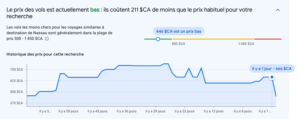 Bonne nouvelle, les vols directs vers les Bahamas viennent de repasser sous la barre des 450$ pour mai et juin après une grosse baisse de prix aujourd'hui 👌