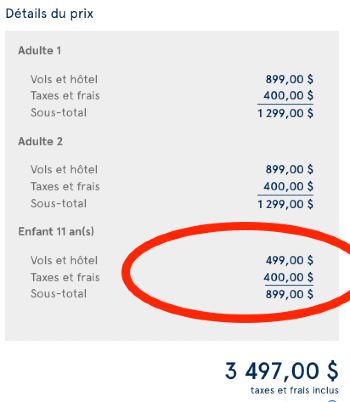 Dès 1299$ (Toronto) ou 1399$ (Montréal) par personne, tu as des séjours en tout inclus 4⭐️ avec avion direct et un bon rabais pour les enfants de moins de 12 ans: