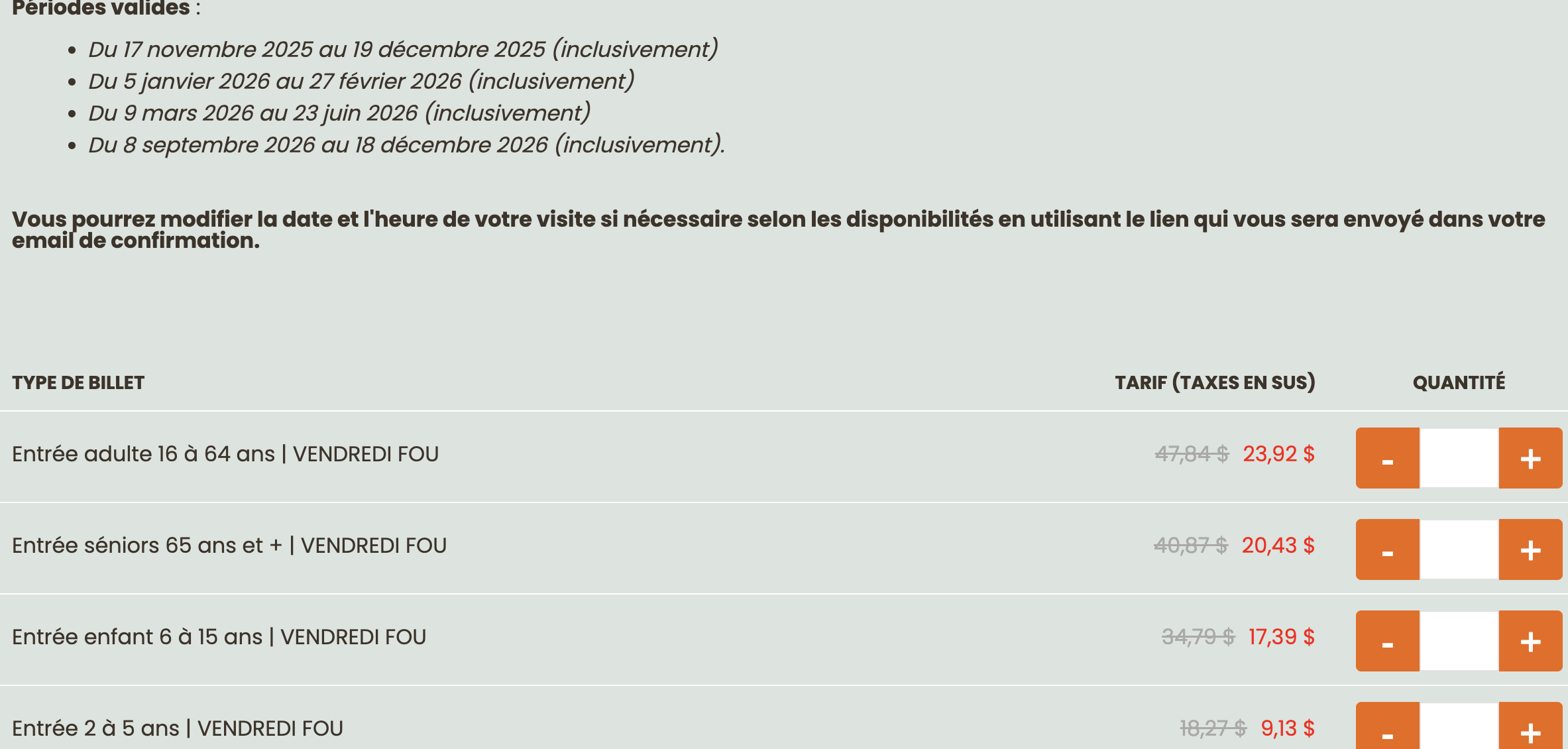 Réserver directement ici dans la section "Billet 2025/2026 - Promo Vendredi Fou": réservation ici